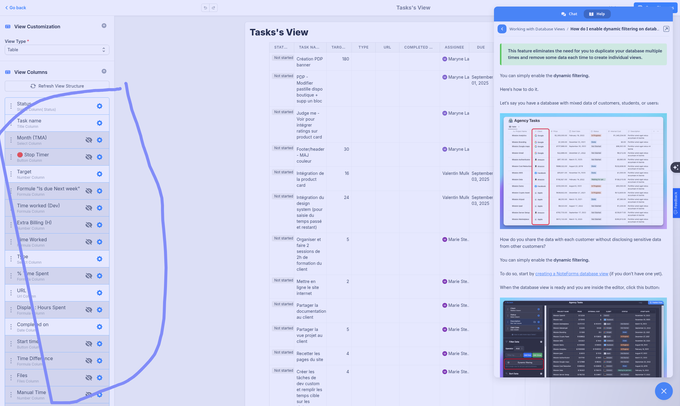 I’m trying to create a database view in order to build customer dashboards for our agency so that they can how we’re working on their project. I have a relation field in my Tasks database, linking it to a project. I can’t however find in the “view columns” inside Noteform. Is it possible that you have some sort of limit on the number of columns you can retrieve ?
